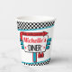Celebrating your next special birthday in the timeless 1950's Diner theme. Look no further than this white, black, red and teal with checked pattern featuring a classic diner sign and car with your choice of guy and girl (in 3 hair colors). See my other listings for various hair and skin tone color options for the guy and gal or use the "Click to customize further" option to unhide the other options. This paper cup will be sure to wow your guests and ensure you have a rockin' great birthday party. Visit www.invitecentral.com for digital downloads.