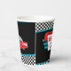 Celebrating your next special birthday in the timeless 1950's Diner theme. Look no further than this black, red and teal with checked pattern featuring a classic diner sign and car with your choice of guy and girl (in 3 hair colors). See my other listings for various hair and skin tone color options for the guy and gal or use the "Click to customize further" option to unhide the other options. This paper cup will be sure to wow your guests and ensure you have a rockin' great birthday party. Visit www.invitecentral.com for digital downloads.