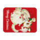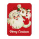 This vintage mid-century Christmas magnet features a 1950s Santa Claus waving "Merry Christmas" while Rudolf the Red-Nosed Reindeer looks on.
