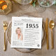 Say happy birthday to someone born in 1955 with these unique retro Newspaper style napkins, including a collection of fun facts and world news from the year of their birth. Designed to resemble a vintage newspaper with black and white text, it is easily personalized with a photo of the guest of honour and their name. Celebrate the 1950s in unique style.