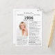 Say happy birthday to someone born in 1956 with this unique Newspaper style birthday postcard, including a photo of the recipient and a collection of fun facts and world news from the year of their birth. Designed to resemble a vintage newspaper in classic black and white style. A cute and fun way to celebrate the 1950s!