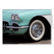 1959 vintage Chevy Corvette detail: headlights, fender, wheel with white wall tire