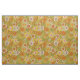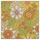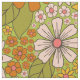 This fabric has a retro floral pattern in green, orange, and pink inspired by designs from the 1960s and 1970s.