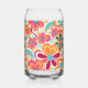 Bright, bold, and full of vintage charm, this retro floral can glass brings a burst of color to every sip. The wraparound design features playful 60s‑inspired flowers in sunny oranges, pinks, teals, and yellows, creating a cheerful throwback look that feels both nostalgic and modern. Perfect for iced coffee, sparkling water, cocktails, or everyday hydration, this glass adds personality to your kitchen, desk, or bar. A fun choice for anyone who loves mid‑century style, groovy patterns, or happy, feel‑good design.