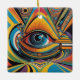 Immerse yourself in the 1960s psychedelic art movement with this striking piece. Richly saturated colors in glaring contrast create a vibrant, eye-catching effect. The strongly symmetrical composition and collage elements add depth and intrigue, while rubber-like distortions twist familiar shapes into surreal forms. Exemplifying horror vacui, every inch is filled with intricate details that captivate and overwhelm, truly embodying the spirit of the psychedelic era.