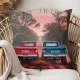 Create a unique bridal shower or anniversary gift for a special loved one or couple. 1960s trucks racing down a red dirt road together through the country and kicking up some dirt with a pink sky sunset in the distance. The left truck is red, the right one is royal blue. Add custom names to the tailgates using our template!