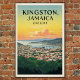 • This vintage travel poster captures the serene beauty of Kingston, Jamaica. The digital illustration features a classic 1960s design, perfect for a touch of island nostalgia.
