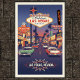 • This vintage travel poster captures the vibrant energy of the Las Vegas Strip during the 1960s. The classic design is a simulated painting on a canvas, perfect for adding a touch of nostalgic charm to any space.