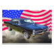 Classic black 1967 Pontiac GTO muscle car photo with American Flag background.