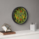 This wall clock has a mid-century modern 1970s design of diamonds, and starbursts on a field of green.