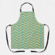 This apron has a 1970s chevron design in retro orange and white on a field of blue.