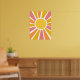 1970's hippie modern sunburst poster. Perfect cheerful boho flower power sunshine wall art for him/her/them. Bright pink, orange, and mustard yellow adorn this sunny art piece.