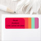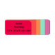 These return address labels have a 1970s design of concentric squares in retro shades of purple, green, magenta, and orange.