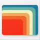 This mouse pad has a 1970s design of concentric squares in retro shades of blue, white, and orange.