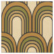 Vintage pattern design featuring 1970s colour scheme in brown, yellow, green and beige. Repeating arches pattern fabric.