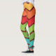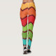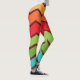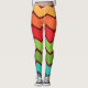 These leggings have a 1970s design of zigzag lines in yellow, orange, red, green, and blue on a field of brown.