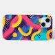 Vivid, wavy lines and geometric shapes intertwine in a dynamic composition of pink, yellow, and blue. A harmonious blend of colors and patterns gives the artwork an energetic, abstract feel.
