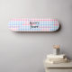 A girly chequerboard colourful design with pink and pastel colours. Personalized with your name. Great modern retro design for a skating fan.