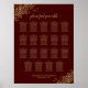 Ce magnifique tableau de sièges mariages propose des assignations de table pour 190 personnes, avec 10 personnes à chaque table. Le design est simple mais élégant avec du texte doré sur un arrière - plan de couleur chocolat ou auburn. Il y a des boucles et des tourbillons en dentelle or faux feuille dans les coins et la calligraphie de script fantaisie lisant "s'il vous plaît trouver votre table."