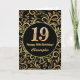 19th Birthday Black and Gold Floral Pattern Card