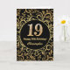 19th Birthday Black and Gold Floral Pattern Birthday Card. For further customization, please click the "Customize it" button and use our design tool to modify this template.