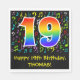 This fun, vibrant, and colourful birthday paper napkin design features a large number "19" having a rainbow spectrum gradient inspired pattern. It also features the message "Happy 19th Birthday,", and a customizable name. Part of the background has a pattern of various music notes and symbols having a variety of colours and sizes. Birthday themed paper napkins like this might be used when celebrating a musician’s, a singer’s, a composer’s, or somebody else’s nineteenth birthday. [~Z0000421]