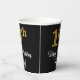 This stylish, elegant, and luxurious birthday paper cup design features a large ordinal number “19th” having a faux/imitation gold-like look, along with the birthday greeting message “Happy 19th Birthday,” and a customizable name in a script-style font. It also has a black-coloured background. Stylish paper cups like this might be fun to use at a birthday party in honour of somebody’s 19th birthday. [~Z0000538]