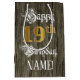 19th Birthday: Faux Gold Look & Faux Wood Pattern Medium Gift Bag
