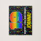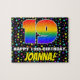 This colourful and joyful birthday jigsaw puzzle design features a large number “19” having a multicolored rainbow spectrum inspired gradient pattern. It also features the message “HAPPY 19th BIRTHDAY,”, and a personalized recipient name. The background features a vibrant, multicolored stars pattern. An eye-catching, personalized birthday puzzle like this might be a fun way to send birthday wishes to somebody who is celebrating their nineteenth birthday. [~Z0000607]
