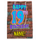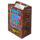 The front of this fun birthday gift bag design features the message “HAPPY 19TH BIRTHDAY,” having a colourful, vibrant, graffiti and urban street art inspired look, in addition to a personalized recipient name. The background features a pattern inspired by the look of a brick wall. A vibrant gift-bag like this might be a fun way of wrapping a birthday present or gift being given to somebody who is celebrating their 19th birthday. [~Z0000536]