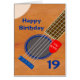 19th Birthday card for someone who loves the guitar. A close-up of a guitar with a plectrum tucked into the strings. On the plectrum are the words 'You Rock'. A birthday card for a musician who loves the guitar.