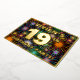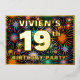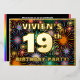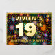 The front of this eye-catching nineteenth birthday party foil invitation card design features a personalized name, a large number “19th”, the message “BIRTHDAY PARTY!”, and a border. The background of the front has an exciting, multicolored pattern that resembles bursting celebratory fireworks. The back features personalized details about the event, such as the date, time, location, and any other relevant information. Personalized invitations like these might be a fun way to invite guests/attendees to a birthday party/gathering being held to honour somebody’s 19th birthday. [~Z0000602]