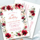 Des roses rouges élégantes et des pivoines roses sont nichées dans des feuilles vert foncé pour créer un beau cadre floral qui entoure les détails de votre anniversaire. La calligraphie traditionnelle et classique ajoute une esthétique luxueuse au design. Vous serez fier de l'envoyer à vos invités.
