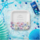 Perfect table decor for a September birthday party. Aster is the birth flower for that month. It forms a pretty watercolor bottom border on this floral personalized paper plate. The birthday guest of honour's name, age and birthdate are placed above it using elegant calligraphy and typography. All text is editable.