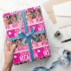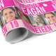 Graphic hot pink, light pink, and white with a little white heart 19th daughter birthday wrapping paper. Bright graphic birthday wrap with three placeholders for your own photos and to customize with your own name, age, and inside message. Matching birthday card is also available. Unique design by Sarah Trett for www.mylittleeden.com