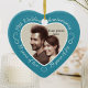 Celebrate a 19th happy year of marriage with a custom photo ornament in a delightful heart shape frame. Simply upload your own photo of the married couple and it will appear in the cutout. The aqua surround features a white script font and decorations. The words are: 19th Wedding Anniversary - 19 years of love - 19 years of joy. On the back you can personalize this keepsake with your own message and can also add the year or a full date if you prefer. Note: the colour of this ornament was designed to complement the aquamarine theme of a nineteen year anniversary, but if youhave your heart set on a different colour, please contact me.