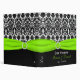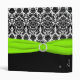 Ce classeur de planificateur de mariage damassé, album photos, ou livre d'invité noir et blanc a une broche verte chartreuse de ruban et de bijou de FAUX. Si vous voudriez assortir la papeterie de livre d'invité, ou si vous avez besoin de n'importe quelle aide customisant ceci avec votre propre information, envoyez svp niteowlstudio@gmail.com pour l'aide.