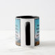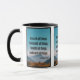 This two-tone mug has a tek tall arabic medium print font with black letters displaying the "1 Corinthians 13:7 KJV" bible scripture verse over a background picture displaying a tall mountain range in the far distance with shorter mountains up close surrounded by light and dark coloured trees under a clear sky with low cloud cover creating a dual colour look. This verse is referencing the Book Of 1 Corinthians 13th chapter showing the 7th verse in this bible scripture quote theme from the King James bible. The rim & handle are glazed in matching colours available in 11-ounce or 15-ounce sizes microwave and dishwasher safe ceramic construction.