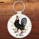 Funny Father's Day key chain with a black strutting rooster, in a crown, and customizable text reading #1 Dad.