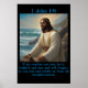 1 John 1:9: If we confess our sins, he is faithful and just and will forgive us our sins and purify us from all unrighteousness. On a poster with Jesus sitting near the calm ocean and a light blue frame. .