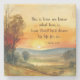 Stone coaster with inspirational quote Scripture depicts a beautiful golden sunset watercolor landscape with yellow, blue and green earth tone colours. It features a beloved and encouraging Bible Verse 1 John 3:16, "This is how we know what love is: Jesus Christ laid down his life for us."