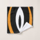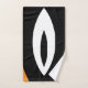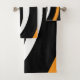 This design features soft, flowing shapes in orange, white and black. It looks like petals or waves, giving it a bold and modern feel.