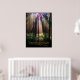 Image of beautiful sun rays shining through a forest of trees that displays God's Word in gold coloured letters.