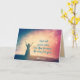 Beautiful custom scripture greeting card depicts a women in a field with her hands lifted to the Lord. It features Bible Verse 1 Peter 5:7, Cast all your cares on him because he cares for you.~