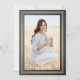 Share the joy of a high school or college graduation and invite family and friends to celebrate with elegant custom photo and faux gold foil and chalkboard invitations. This template is set up as a combination graduation announcement and party invitation, and is simple to personalize with any wording of your choice, such as parents' names, graduate honours or awards, degree, favourite inspirational quote, or future plans and contact info. The design features a printed dark grey faux chalkboard background, elegant striped border, stylish modern calligraphy, classic vintage typography and one favourite photo, such as a senior picture or an image from the commencement ceremony. Please note that gold is printed ombre colour, not metallic foil. These stylish graduation cards are an elegant way to share a special day celebration with family and friends. Congratulations to the graduate!