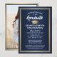1 Photo Elegant Navy Blue Gold & White Graduation Invitation