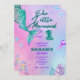 Thème d'anniversaire de la mignonne sirène Invitation - avec un bel arrière - plan océanique coloré avec une mignonne sirène et une queue de sirène. Personnalisez facilement avec vos détails d'événement. Vous pouvez réorganiser et formater le style et l'alignement du texte en appuyant simplement sur le bouton personnaliser. Parfait pour une fête d'anniversaire à thème sirène.