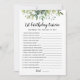 Achetez ce jeu à thème verdoyant et profitez de la carte Trivia de haute qualité pour votre événement! C'est un modèle de jeu, Vous pouvez changer les questions comme vous le souhaitez! Aquarelle verte design feuille.