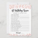 1er anniversaire Trivia éditable jeu Carte