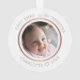Cet ornement de Noël personnalisé présente un design d'or rose faux moderne. Personnalisez le nom, l'année et la photo. C'est à double face. L'avant aura une photo en noir et blanc et l'arrière a votre photo en couleur originale. Ce modèle fonctionne le mieux avec les photos au format paysage avec le sujet au centre.